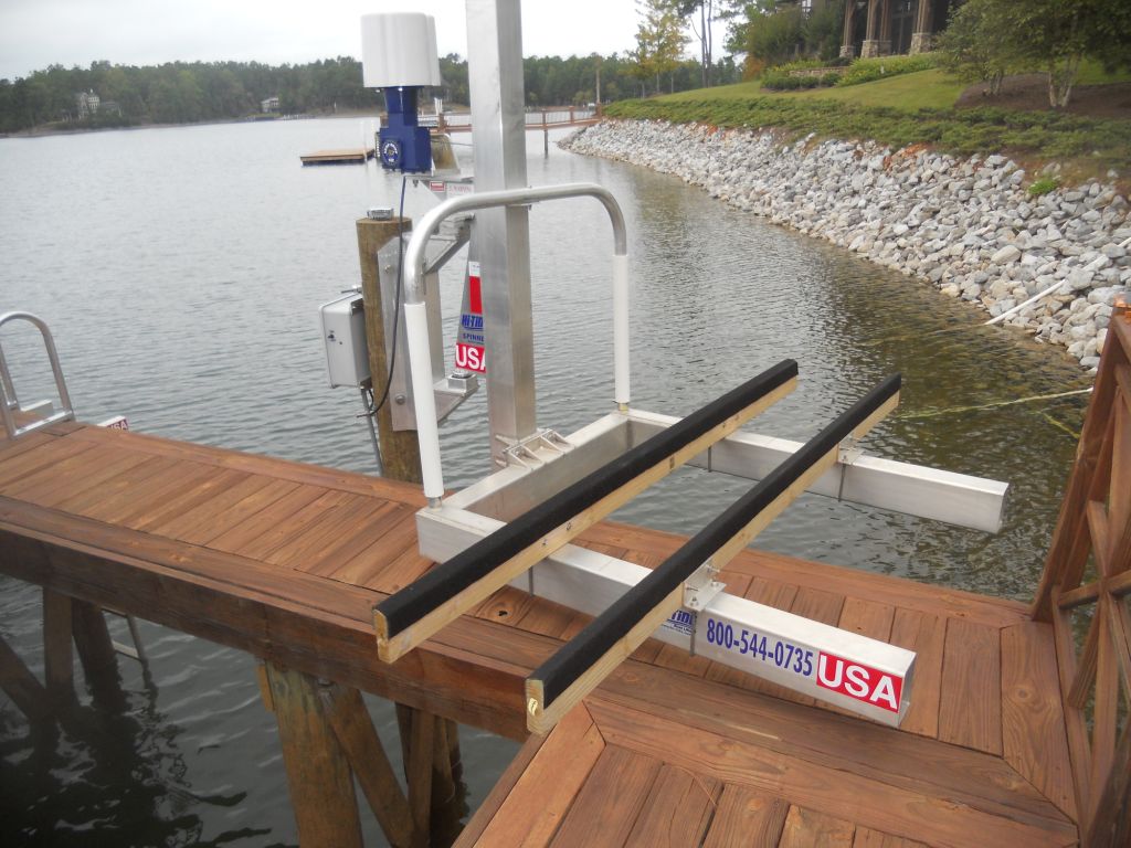 - Spinner (US patent 8,267,620) rotates 180 degrees over dock for safe, efficient storage that leaves a clear waterfront view
