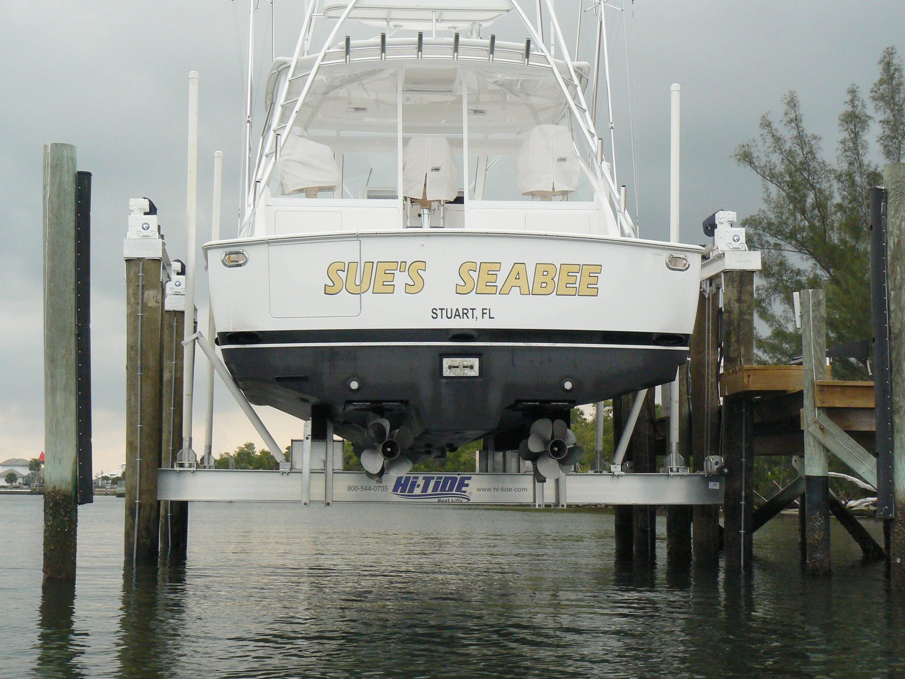 Big boat? No problem! Hi-Tide Yacht Lifts can hold boats from 30,000 lbs to 180,000 lbs! Need a special size or configuration? Call us and let us customize a lift for you!